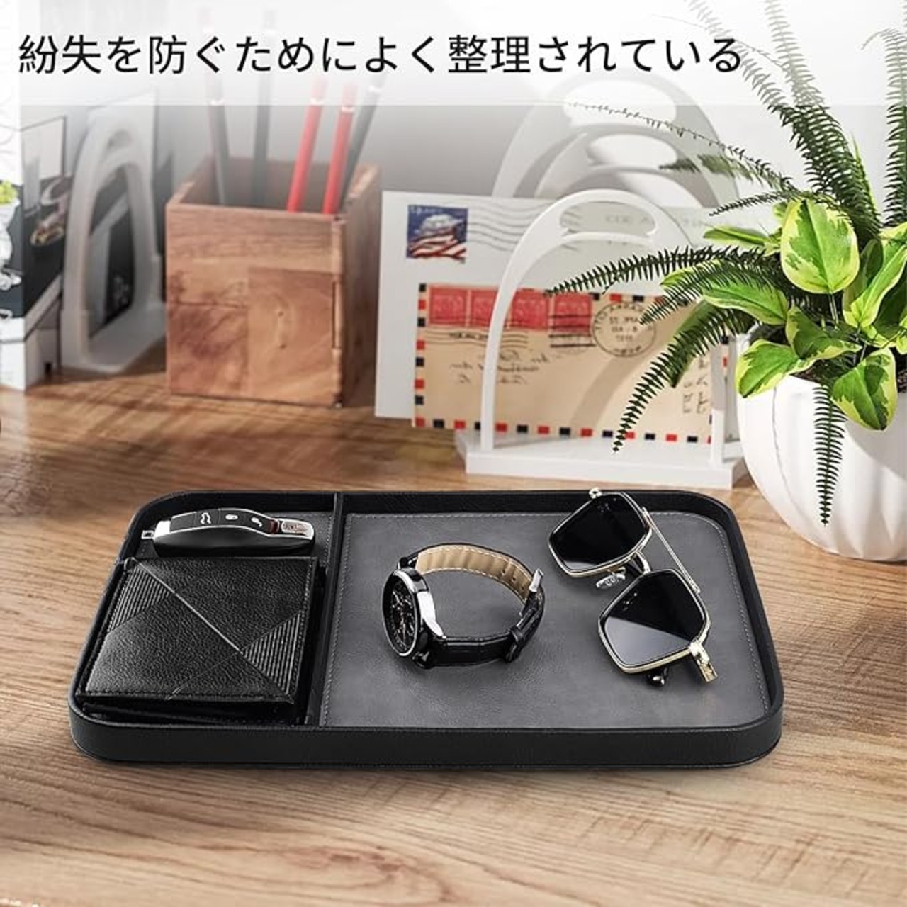 SENEN レザートレイ、小物入れ、ファッションなトレイ、机、玄関用、上質レザー、鍵、時計、財布、小物などスッキリ収納 (黒色の枠)