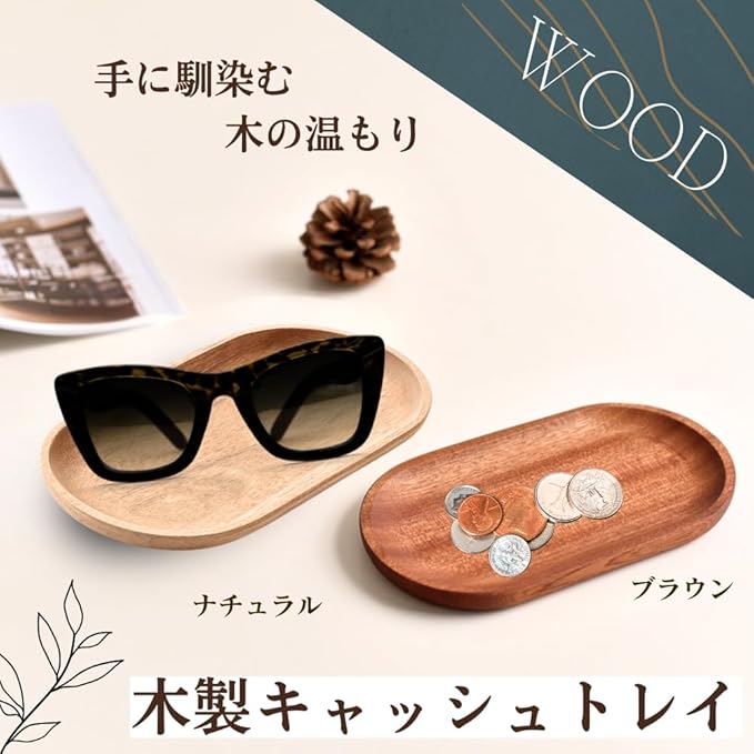 ✅【天然木の温もり】ナチュラルな木目が美しい木製キャッシュトレイ。レジやカフェで高級感を演出できる、店舗映えするおしゃれアイテムです。