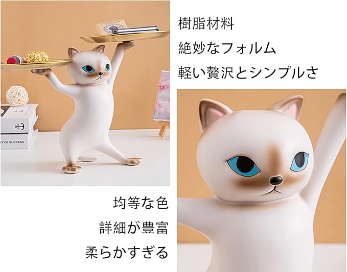 この製品は高品質の樹脂素材を使用しており、滑らかなライン、均一な色、絶妙な形、 商売繁盛で、友人や親戚への贈り物に適しています。 玄関のインテリアに最適で、鍵、財布、時計、イヤリング、ネックレス、ブレスレット、キャンディー、リモコンなどの小物を収納するのに最適です。 パッケージ: 猫本体(22cm 21cm 9cm) 1 大トレー(直径17cm) 1 小皿(直径14cm) 1 ご注意: 1:照明効果や撮影角度により、商品に色違いがありますので、ご了承ください。 2:手動測定のため、製品サイズには許容範囲があります。