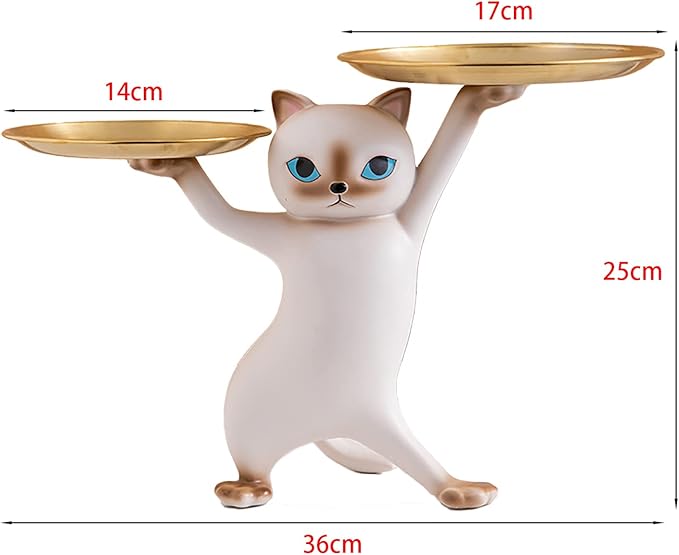 【商品のサイズ】寸法 (手で測定): 猫 置物:幅 22cm 高さ 21cm 厚さ 9cm 大トレイ: 直径 17cm 小トレイ: 直径 14cm。