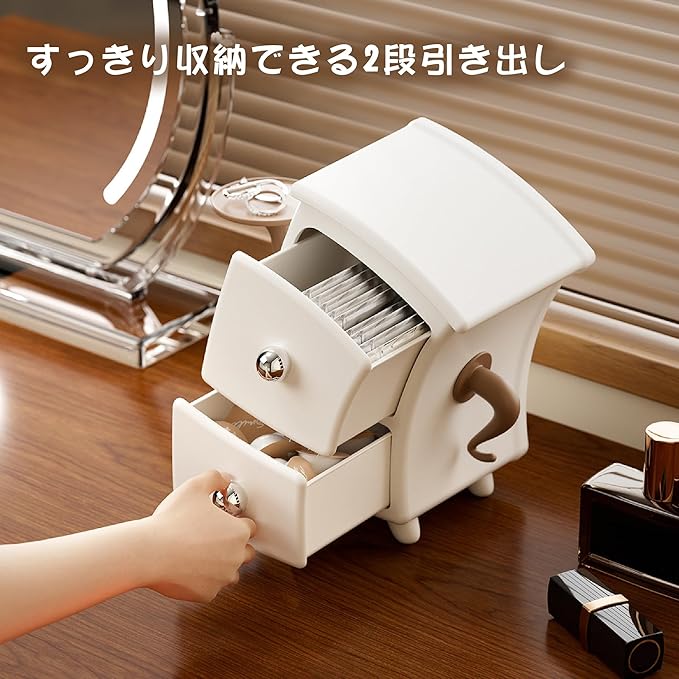 2段のスムーズな引き出し: イヤリング、ピアス、指輪などのアクセサリーや、貴重な小さな文房具などを、すっきり分けて収納。※ペンなどの長いものは収まらないため、小さなアイテム専用としてお楽しみください。