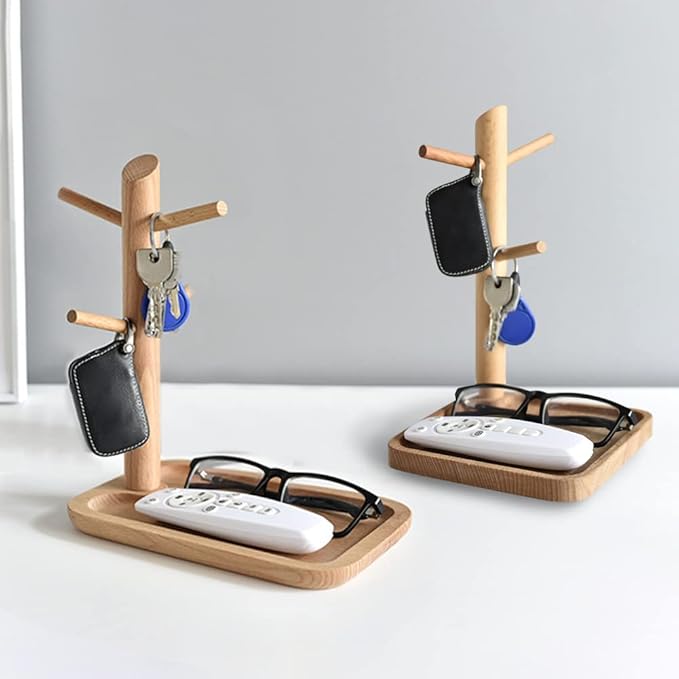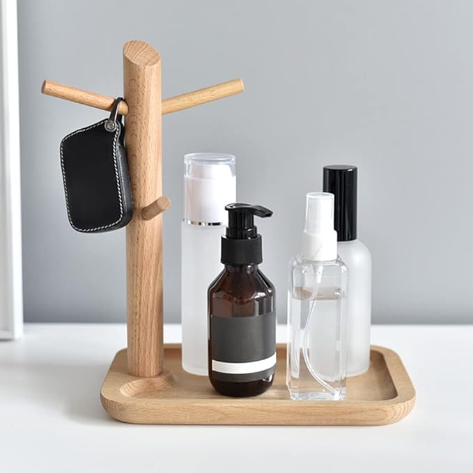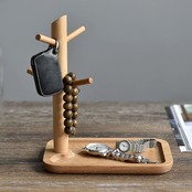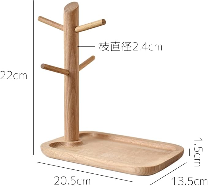 【仕様】木製枝様式の鍵スタンド、素材:ブナ。プロセス:木材の表面は繰り返し磨かれます。木目ははっきりしている質感。スタイル・サイズ・重量:トレイ・長方形S:20.5*13.5*22cm、ベース高さ1.5cm、枝直径2.4cm、0.27kg。漆なし、エコ。
