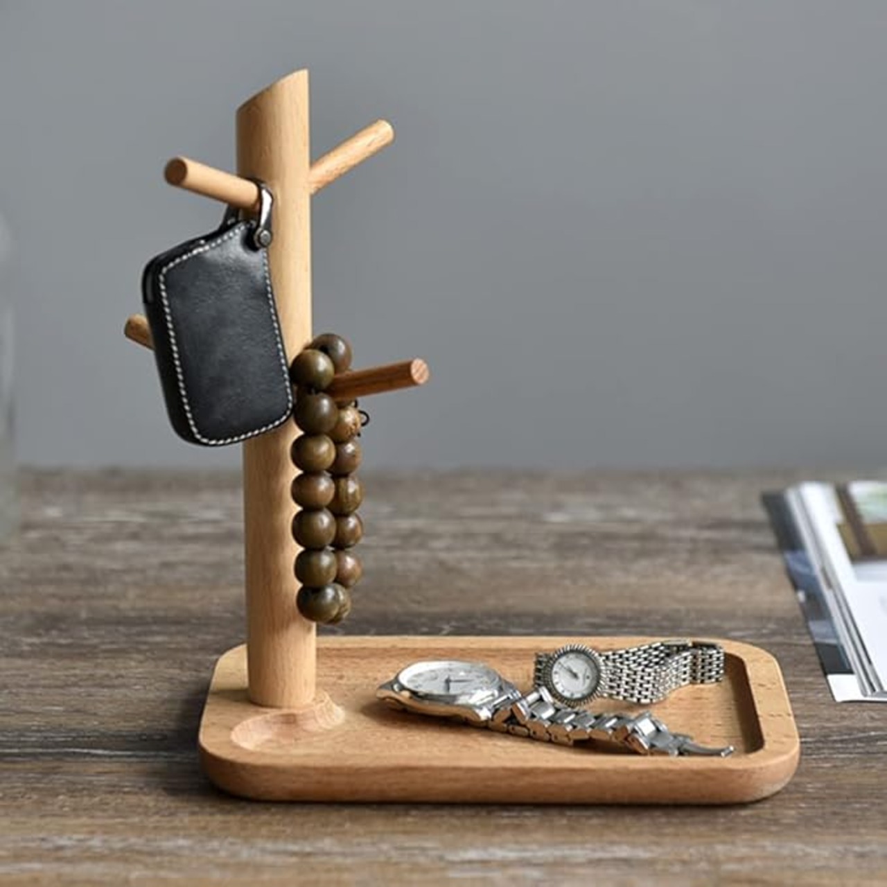 【多機能収納】キー、ジュエリー、メガネ、サングラス、携帯、腕時計などの卓上小物収納するスタンドとして使えます。
