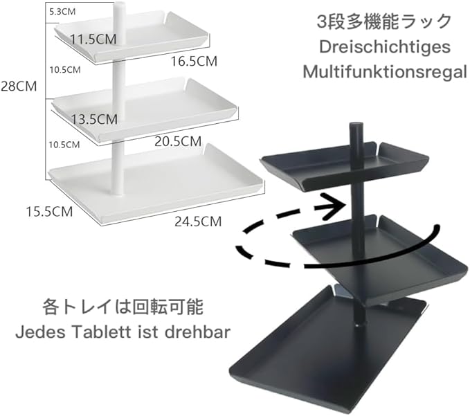 仕様:組立式360 回転可能な3段アクセサリー収納トレイ。北欧おしゃれ、ユニセックス。注:写真のスタンドにあるアイテムは別売りです