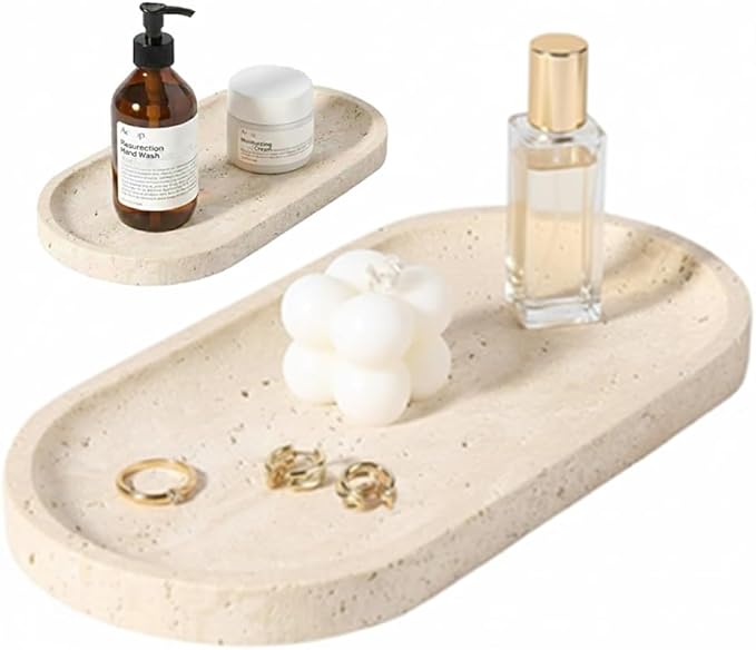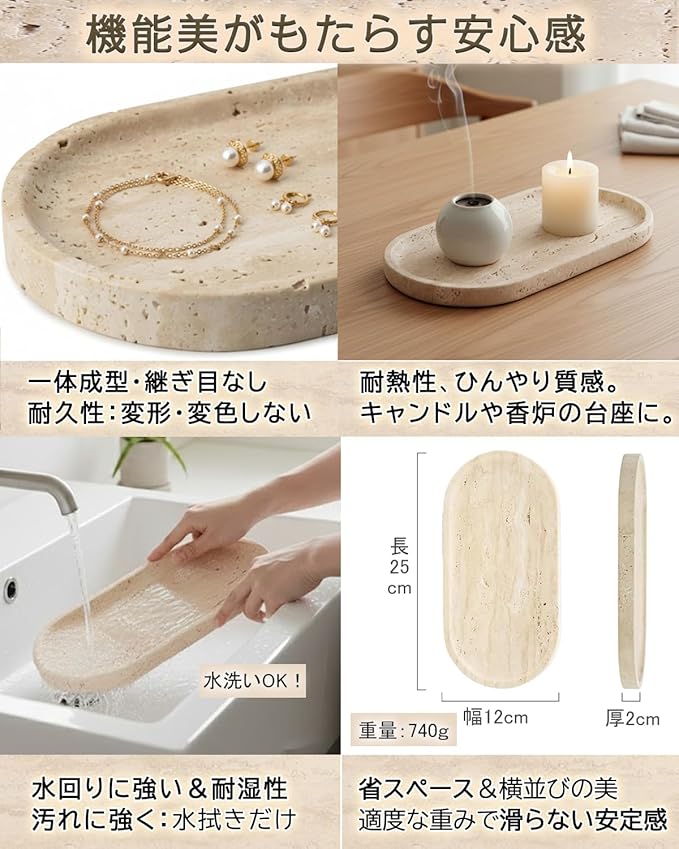 ✅【日本の住空間にちょうどいいサイズ感】 25cm 12cm のオーバル型は、大きすぎず小さすぎない、使いやすいサイズ設計。・洗面台で、ボトル類やコップをすっきりまとめて ・玄関で、鍵・時計・小物の定位置に ・ベッドサイドで、スマートフォンやメガネ置きとして ・香炉・キャンドルの受け皿としても美しく映えます。