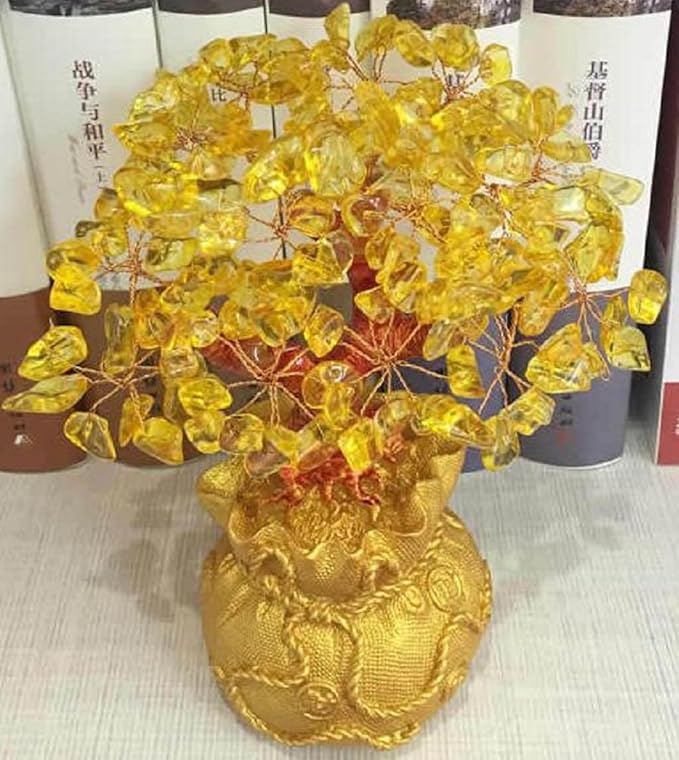 【morningplace】 招財樹 金のなる木 開運 金運 運気 アップ 風水グッズ 玄関 リビング 装飾品 (黄水晶)